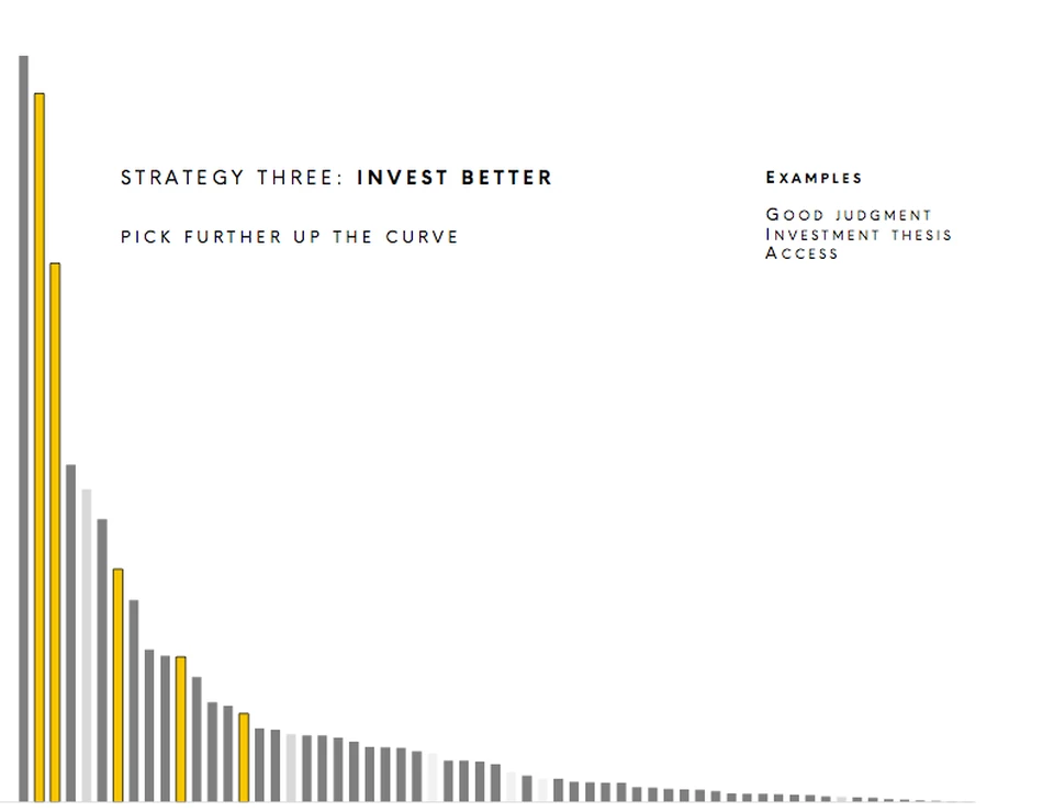 My view is that there are only three truly distinct venture fund strategies, and all of them boil down to one point: Can you change the distribution of the companies in which you invest? Among the many approaches in venture capital, there are fundamentally only three ways to do this. The best funds pursue all of them.
